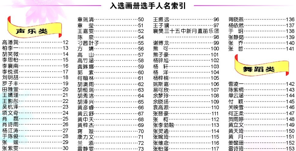 《楚天艺术大赛暨“蒲公英”优秀艺术新人湖北地区选拔活动十周年纪念画册》现已排版完成,请家长通过选手参赛类别(声乐类、器乐类、朗诵类、舞蹈类)在以下新闻中查找自己的图片并进行核对,如有错误或疑问请致电湖北组委会027-82704310。画册正式从下周一开始印刷,时间有限,请家长抓紧时间核对!再次感谢大家的耐心等候!