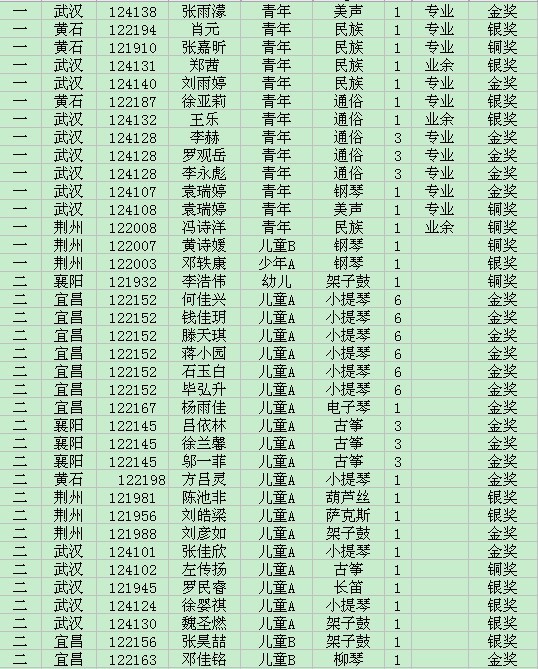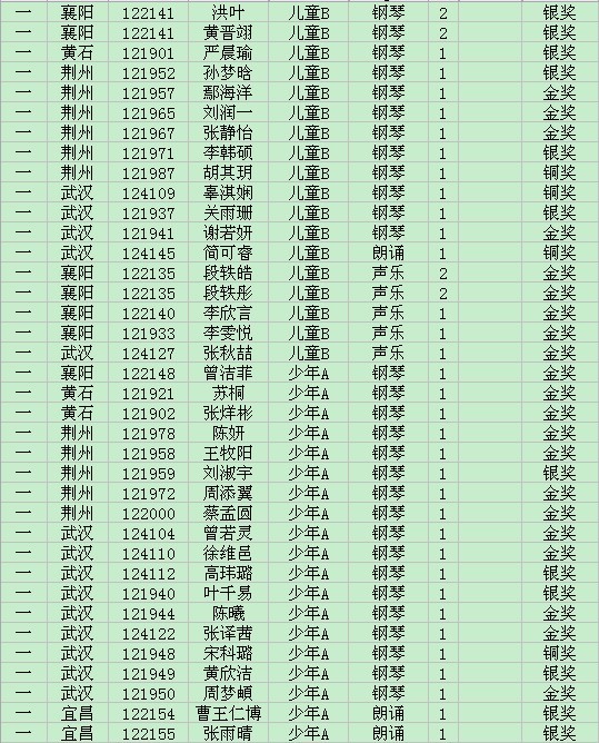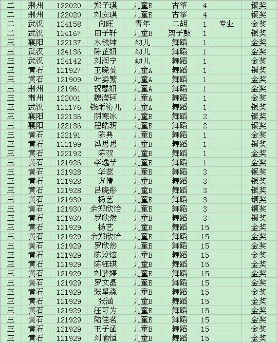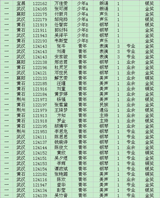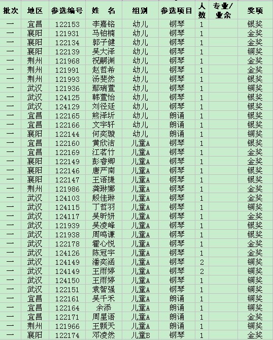 蒲公英2012青少年优秀艺术新人推选活动获奖情况