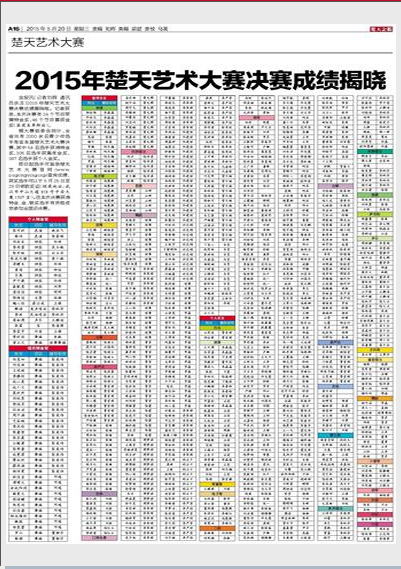 2015楚天艺术大赛湖北省决赛 《楚天金报》 特金奖、金奖获奖名单