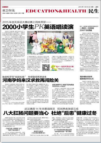 楚天金报系列报道2---2015年楚天英语大赛初赛上周末开锣——2000小学生PK英语唱读演