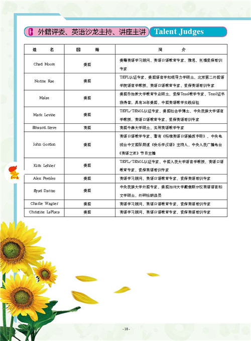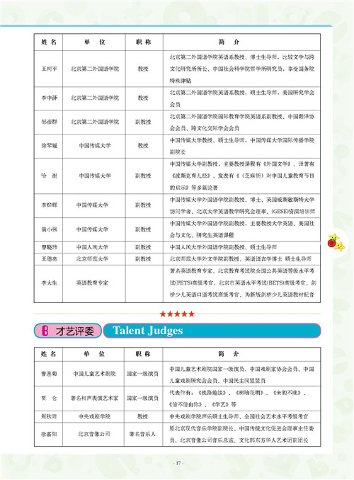 往届“星星火炬”全国青少年英语风采展示 评委名单
