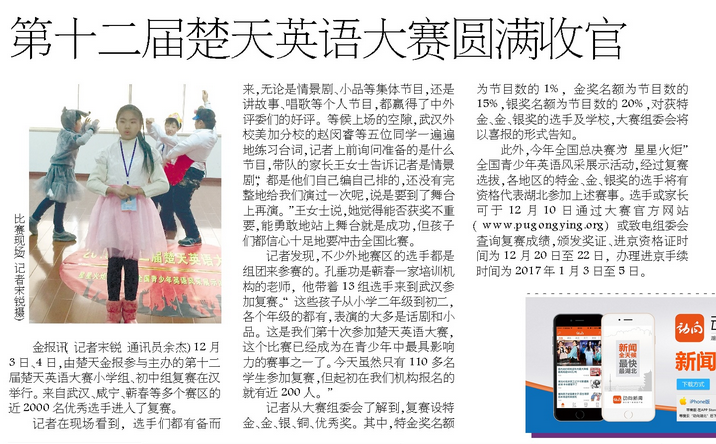 楚天金报系列报道:第十二届楚天英语大赛圆满收官