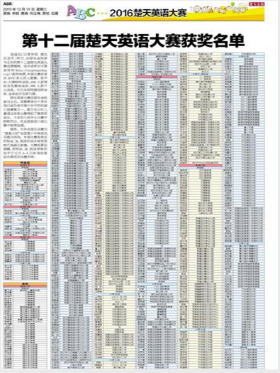 楚天金报系列报道-----图文:第十二届楚天英语大赛获奖名单
