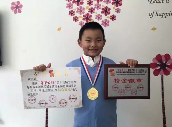 荣获2016“星星火炬”第十三届全国少年儿童英语风采展示活动小学A组英语口语项目特金奖